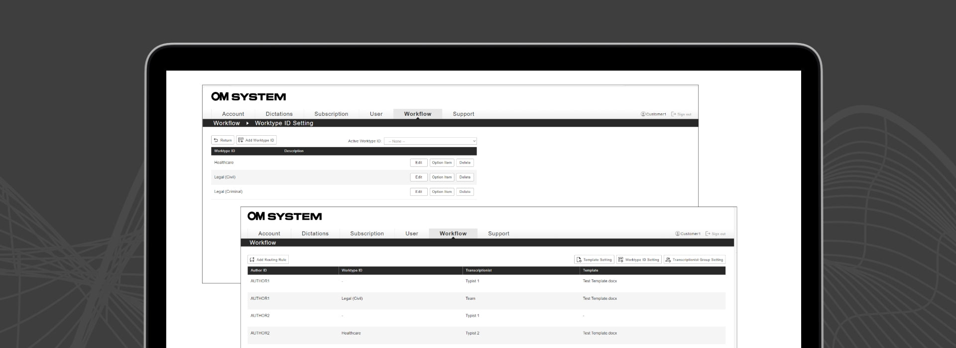 Transcription Group Configuration: Streamline rule-setting for groups. Especially useful for multiple Authors. Worktype ID/Option Item Setup: Classify Dictation files for better organization. Define Worktype ID and add detailed info with Option Item. (DS-9100 and Smart app only)